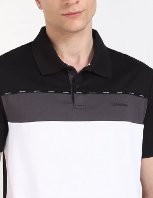 Calvin Klei n Black Premium Imported 240 GSM Interlock Lycra Fabric Polo Tshirt with Front Design and Emboss Logo 4068