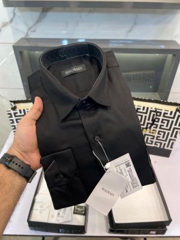 Home Shirts Sale_Balmain_Paris_Black_Front_Metal_Logo_And_Back_Printed_Shirt_With_Premium_Box_Packing_And_Carry_Bag_(1710)