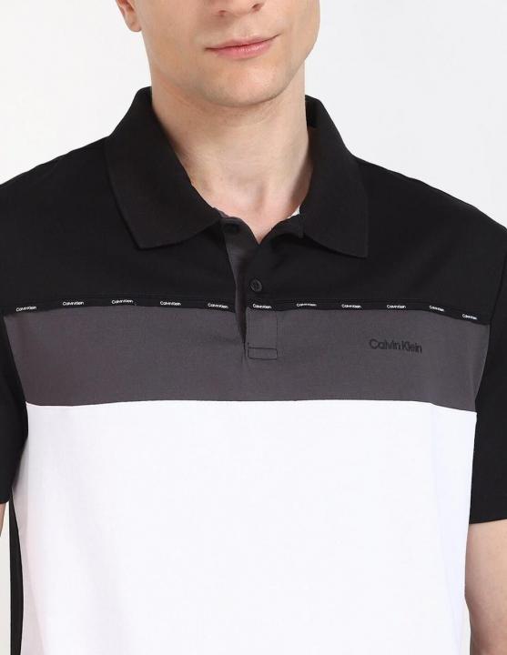 Calvin Klei n White Premium Imported 240 GSM Interlock Lycra Fabric Polo Tshirt with Front and Back Printed Logo 4066
