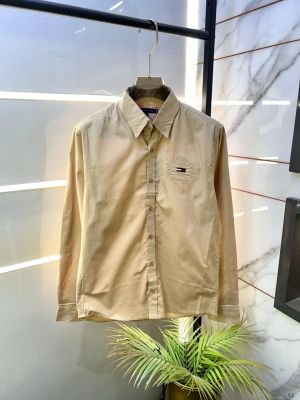 Tommy_Hilfiger Beige Embroidery Logo Oxford Lycra Premium Shirts F2626-BE