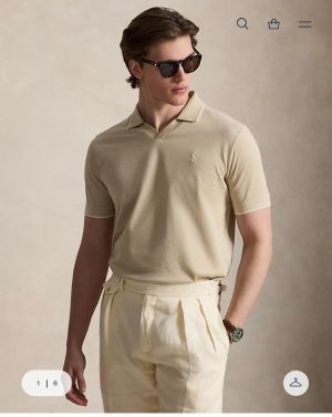 Ralp h Lauren Beige Premium Cotton Pique fabric Polo Tshirt with Collar Design and Embroidered Logo 4089