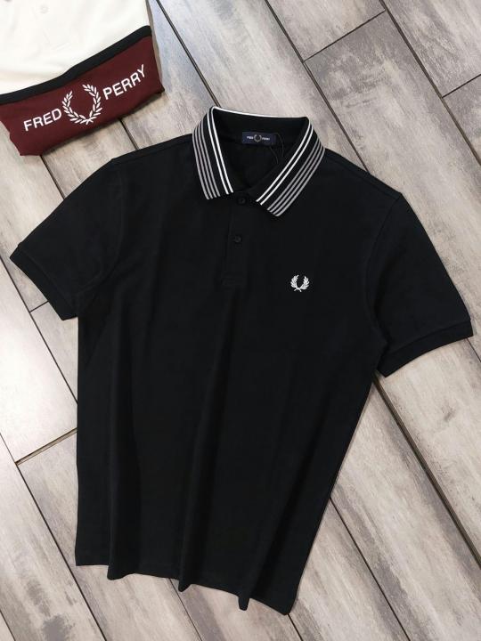 Fred Perry Black Polo Premium Collar Neck T-shirt F3541-BL