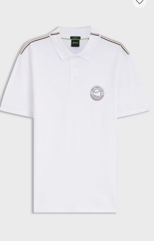 Hugo Bos s White Premium Imported 240 GSM Interlock Lycra Fabric Polo Tshirt with Shoulder Design and Emboss Logo 4078