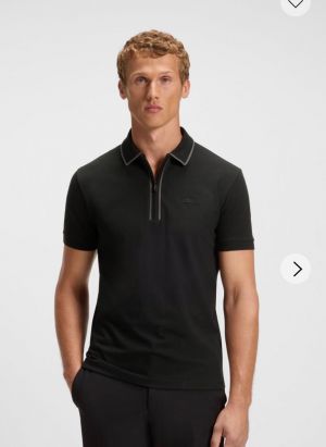 Hugo Bos s Black Premium Imported 240 GSM Interlock Lycra Fabric Polo Tshirt with Collar Design and Emboss Logo 4077