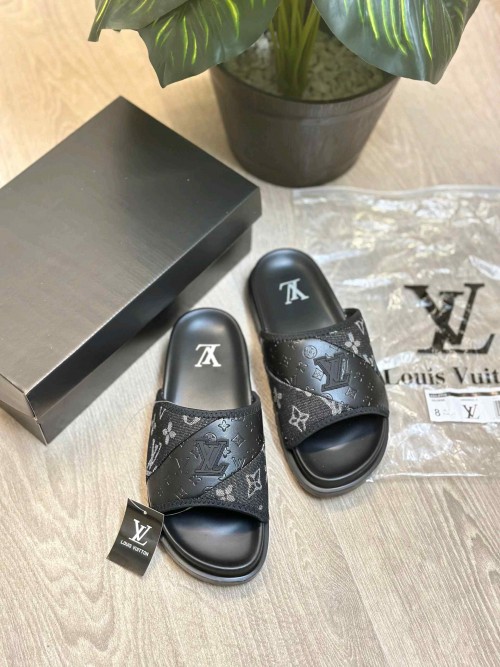 Louis Vuitto.n Monogram All Black Premium Slides