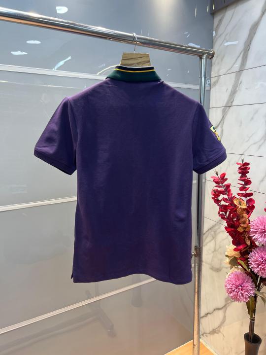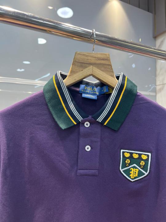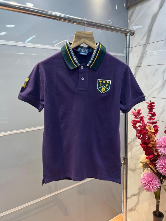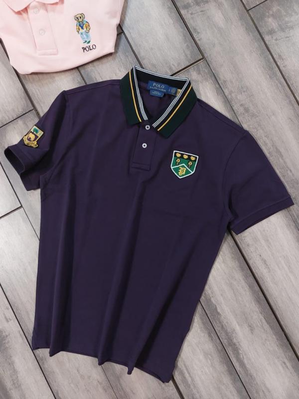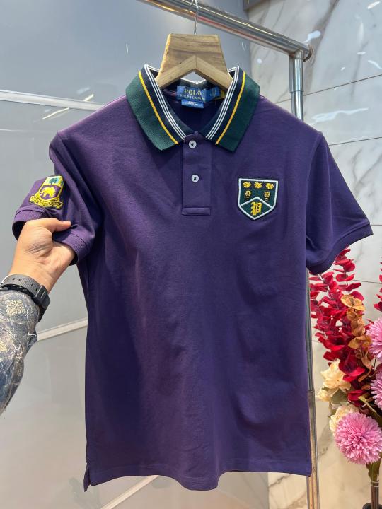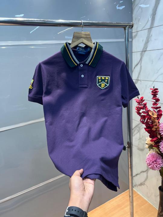 Home T-Shirts Ralp h Lauren Purple Premium Cotton Pique fabric Polo Tshirt with Collar Design and Embroidered Logo 4091